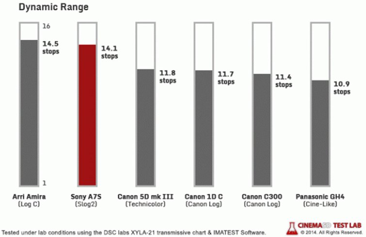 Well in simple terms, this latitude offers shot compositions that cheaper cameras just can’t possibly perform. For example, interior shots that have bright light coming through the windows are now possible without too many concerns. Here is a breakdown of dynamic ranges with a few varying levels of cameras.
